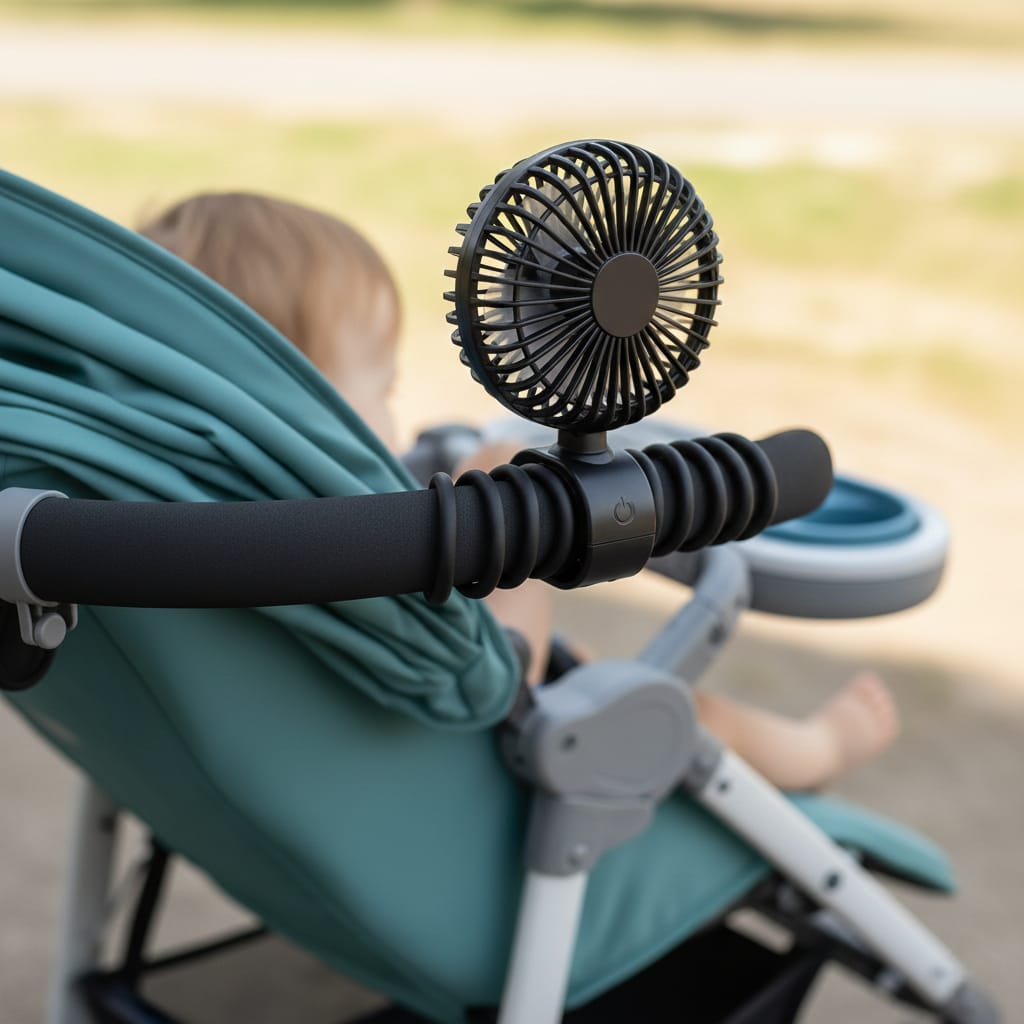 This rechargeable clip-on fan attaches to strollers, car seats, cribs, wagons, and even bikes or treadmills, keeping your baby cool and comfortable. Perfect for summer outings, beach days, and travel.